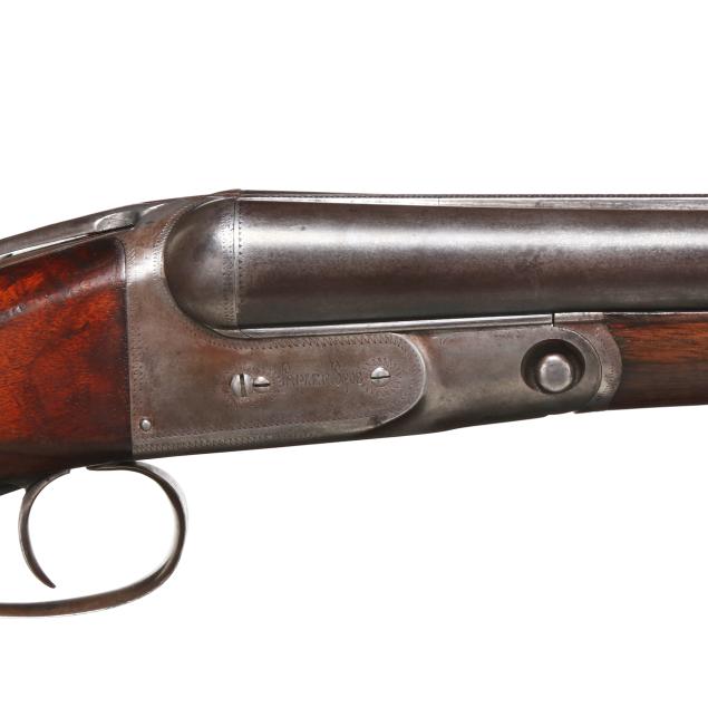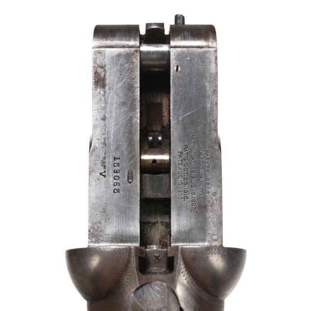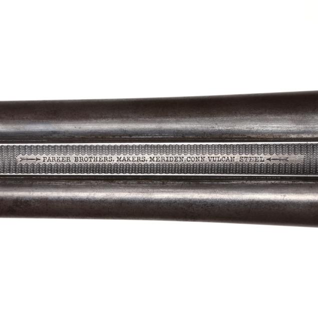 Serial number 159065 present on water table, barrel lug, trigger guard and forend iron, 1 1/2 frame size boxlock action receiver, text of PARKER BROS. MAKERS. MERIDEN CONN. VULCAN STEEL present on matted rib of 28 in. barrel with single bead, extractor, double trigger, automatic safety, capped pistol grip checkered walnut buttstock, checkered splinter forend, fatory buttplate.