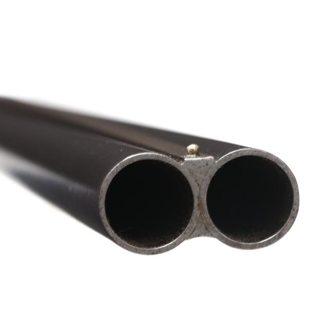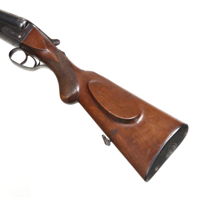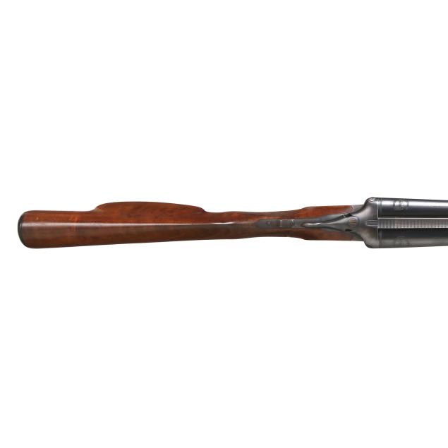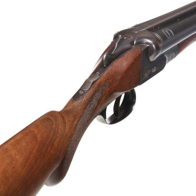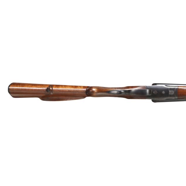 Overall good estate condition, bright and shiny bores, barrels ring with a clear church bell tone, barrel to action fit is tight, blued surfaces are healthy with slight imperfections from handling and use, light damage to rib matting 13 in. from muzzle, no visible screw slot damage, buttstock and forend finishes have light to moderate field marks, checkering patterns are clearly present albeit worn and somewhat filled in with finish.