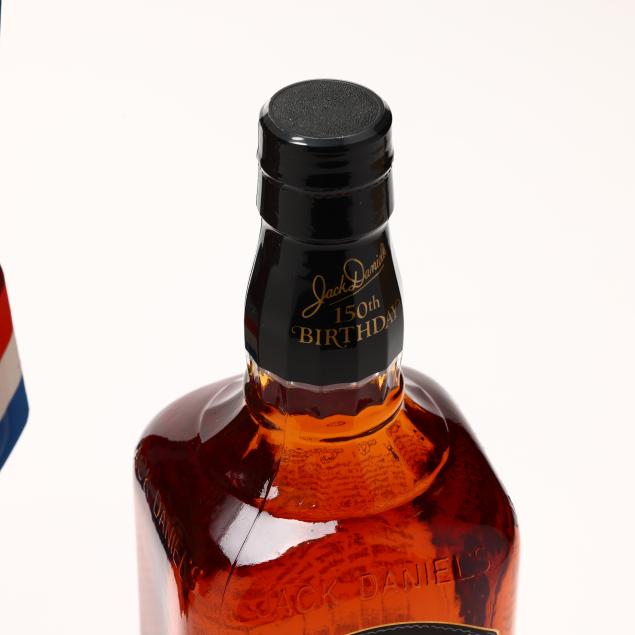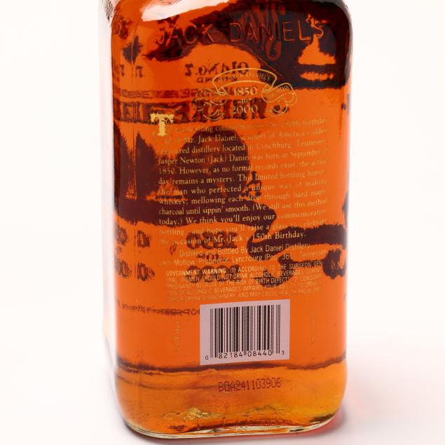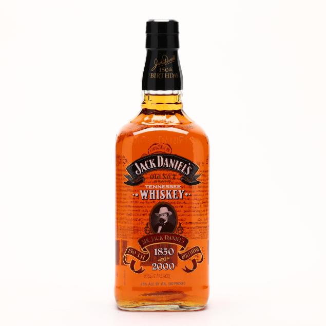 NV, Jack Daniel's 150th Birthday Old No. 7 Tennessee Whiskey [1850-2000], Lynchburg, Tennessee, 45%, 2000 bottling, into neck, sealed, incudes tin 20.5 inches x 27.5 inches tin sign with the wording 'Mr. Jack Daniel's 150th Birthday' (1 1 L)