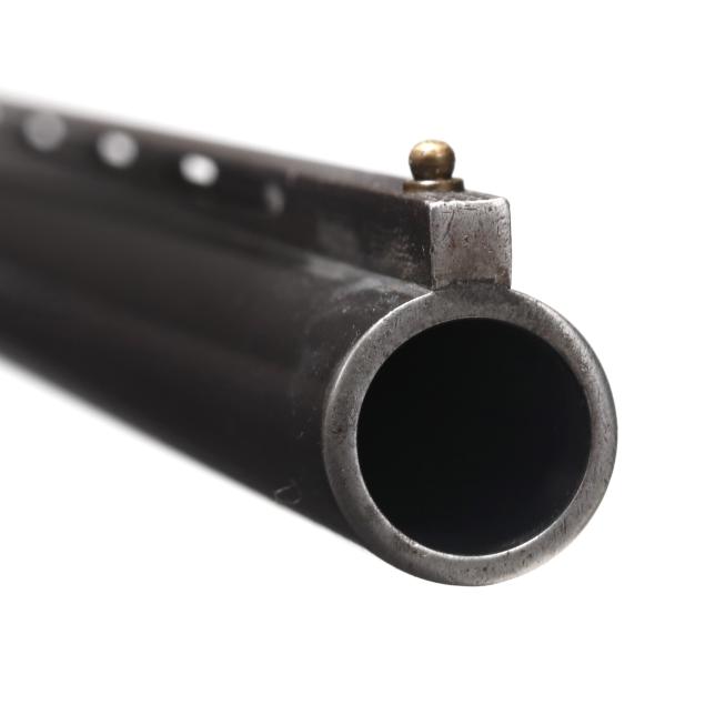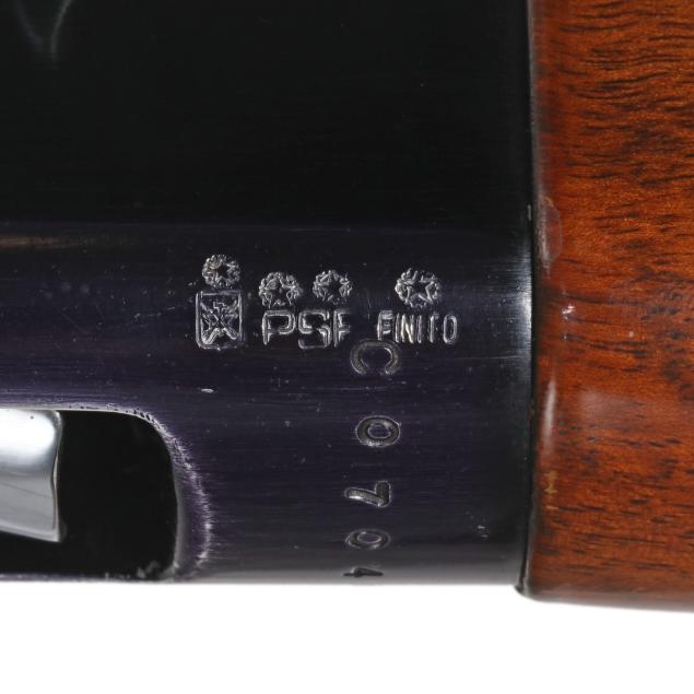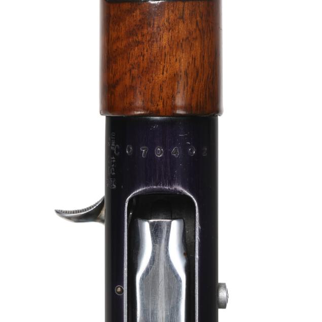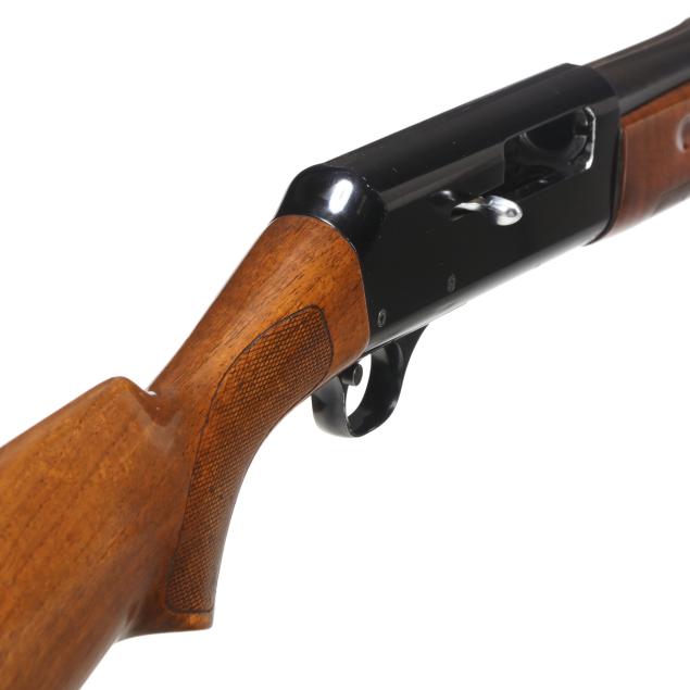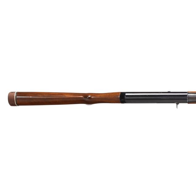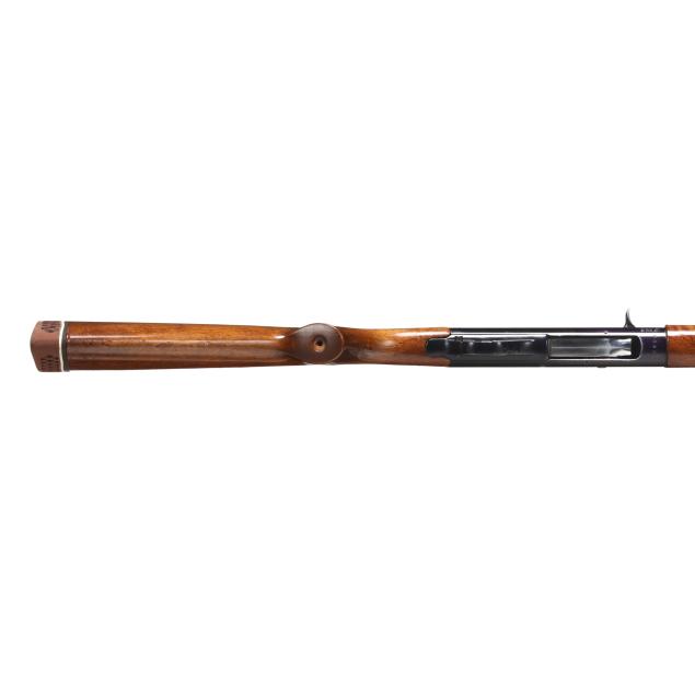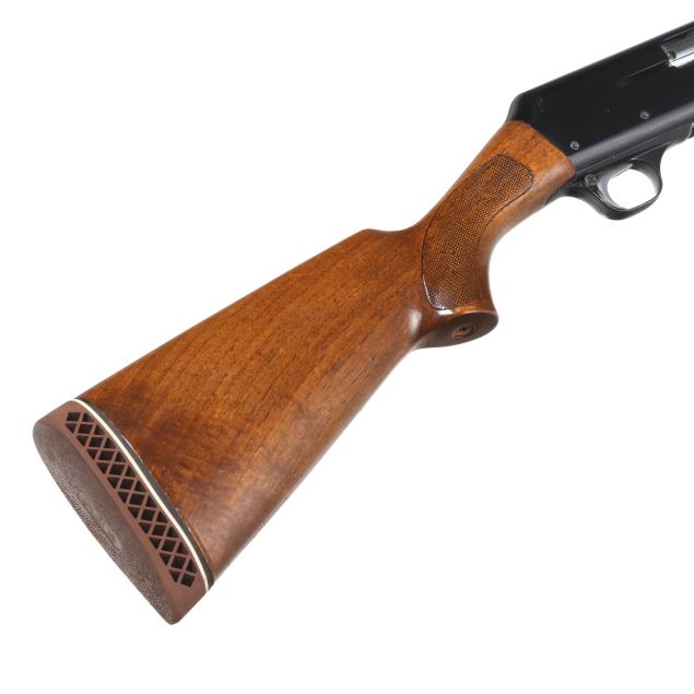 Overall fair estate condition, bore is bright and shiny, some scratches and blemishes in the receiver anodizing, wear of blued surfaces along edges of top rib and where the forend meets the barrel, stock refinished with a heavy and thick substance which has filled the checkering, some finish drips are present, recoil pad is healthy and remains pliable, factory grip cap missing.