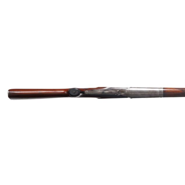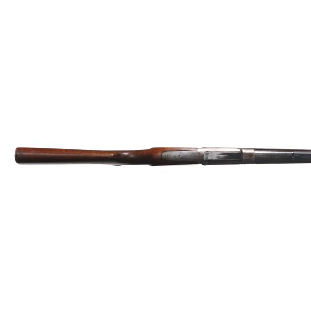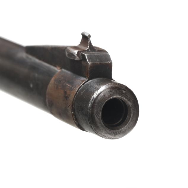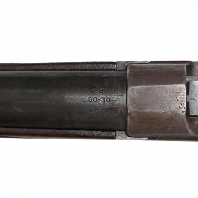 Overall fair estate condition, bore frosted and slightly dull with visible rifling, blued finishes worn throughout, surface rust, brown gun patina, ding and notches in metal most notably three deep gouges on right side of receiver forward of lever, cocking indicator not operations, lever spring is broken or missing allowing lever to rattle significantly, level previously bent and straightened leaving evidence of the repair in the shape of the lever loop, aftermarket allen key set screw installed in rear sight for retention, sliver break along top left edge of forend, stock and forend finish is reasonably health with clean checkering.