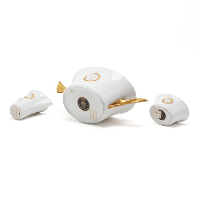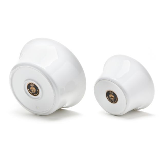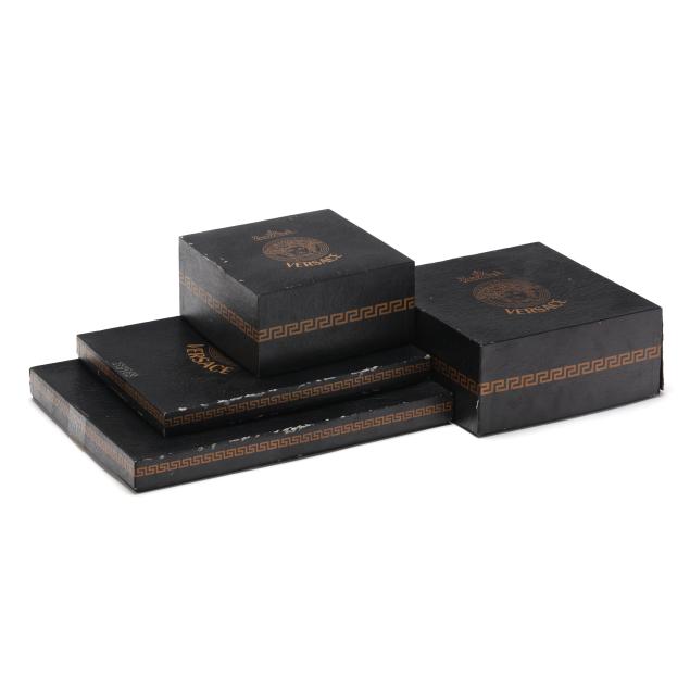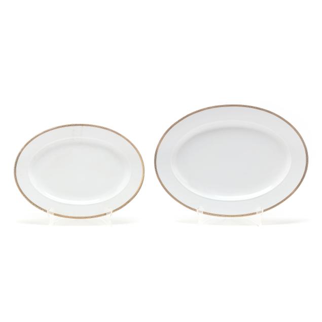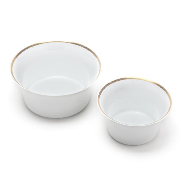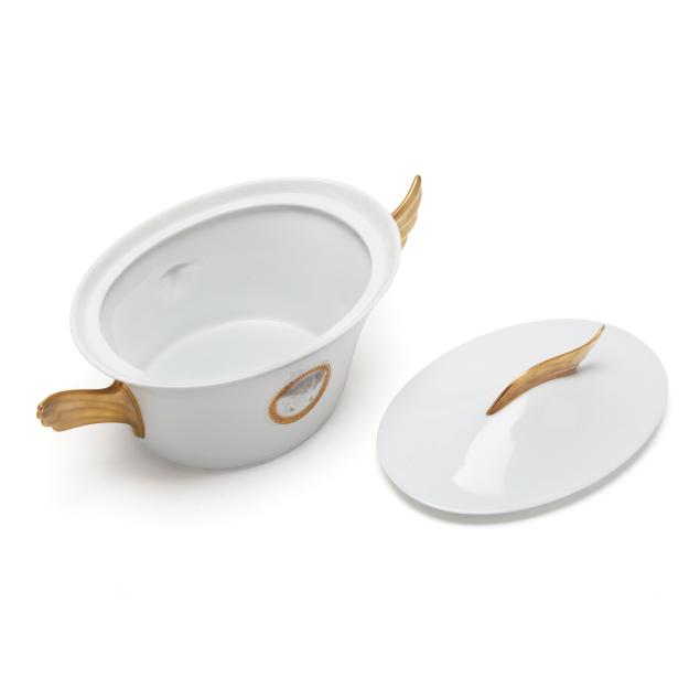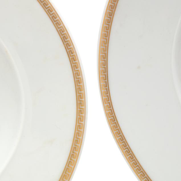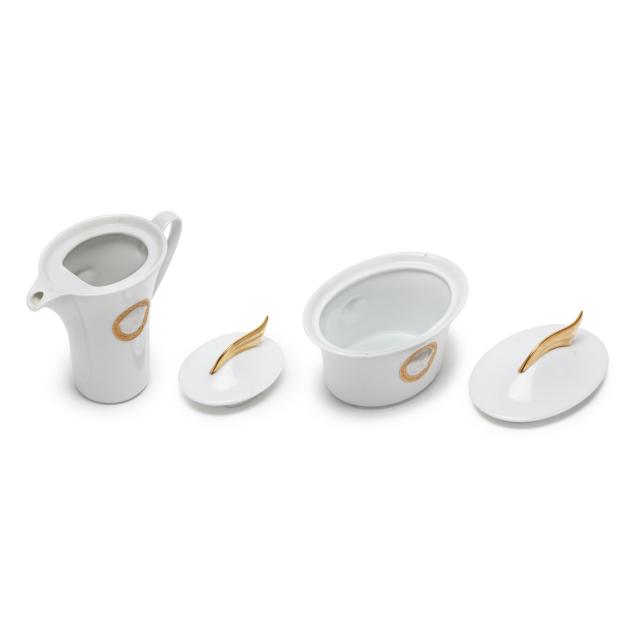 (7) pieces, made in Germany, designed by Versace, each with company backstamps and most marked ‘FORM.IKARUS.PAUL.WUNDERLICH,’ including (2) round serving bowls (diameter of largest 9 7/8 in.); (2) oval serving platters (largest 15 3/4 in.); a covered vegetable (6 x 13 1/2 x 6 1/2 in. including handles); lidded creamer (5 3/4 in.) and lidded sugar (4 in.).