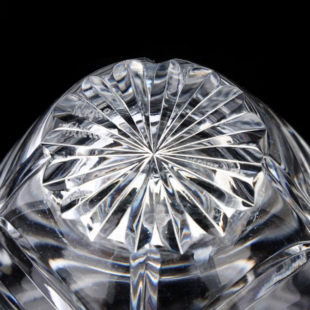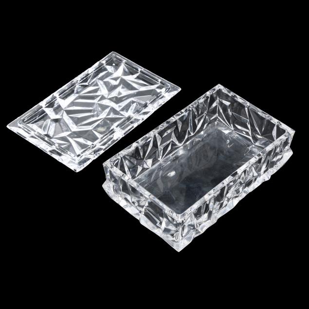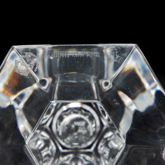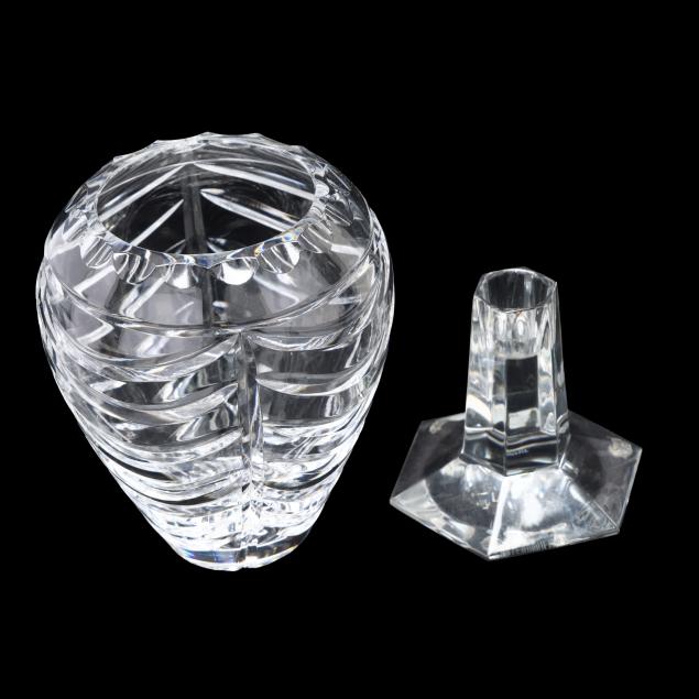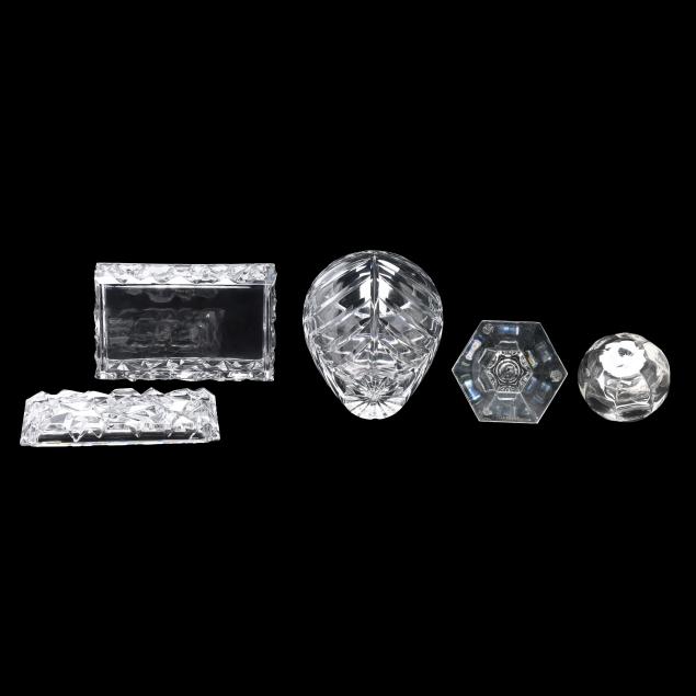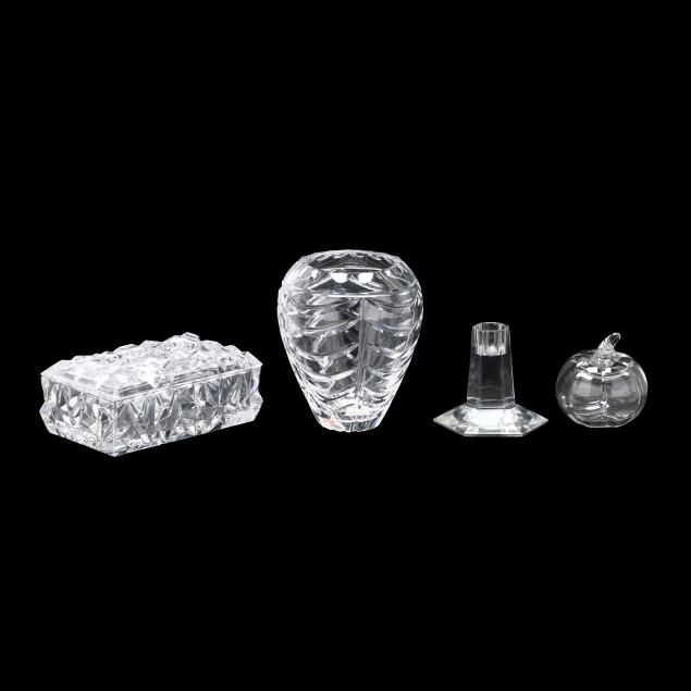 Including a drape pattern vase (6 in.); a Frank Lloyd Wright designed candlestick (3.75 in.); a hollow pumpkin (3.25 in.); and a rectangular lidded "Rock-Cut" dresser box (2.5 x 6.5 x 4 in.), all signed.