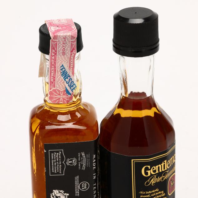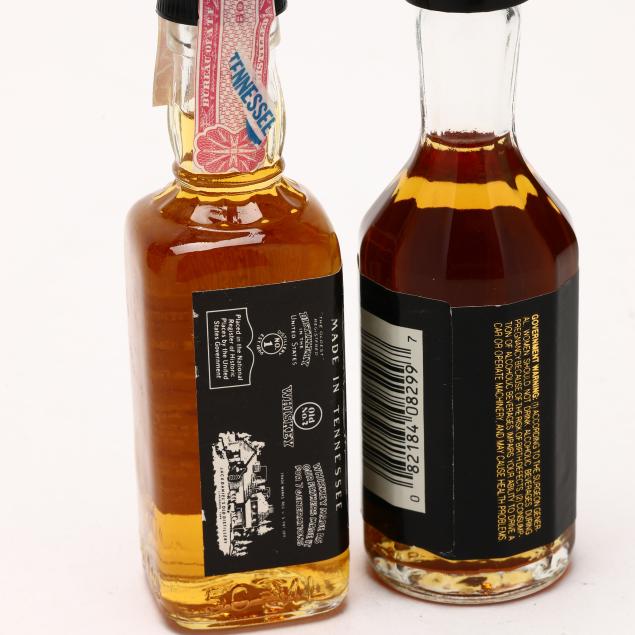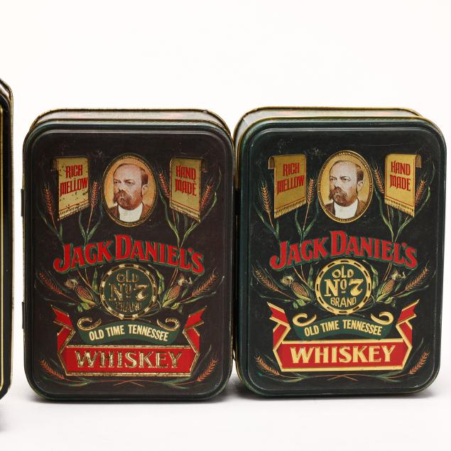 NV, Jack Daniel's Old No. 7 Tennessee Whiskey, Lynchburg, TN, 45%, 1981 bottling, 2 into neck, 2 sealed, includes original metal tin (2 50 ml)