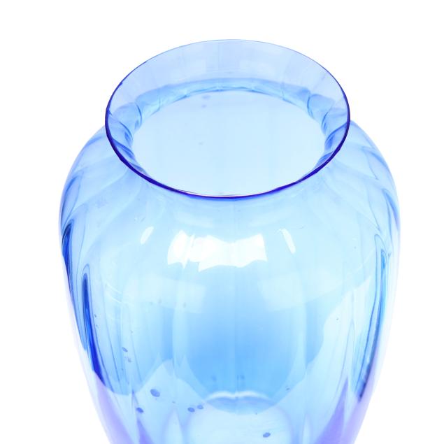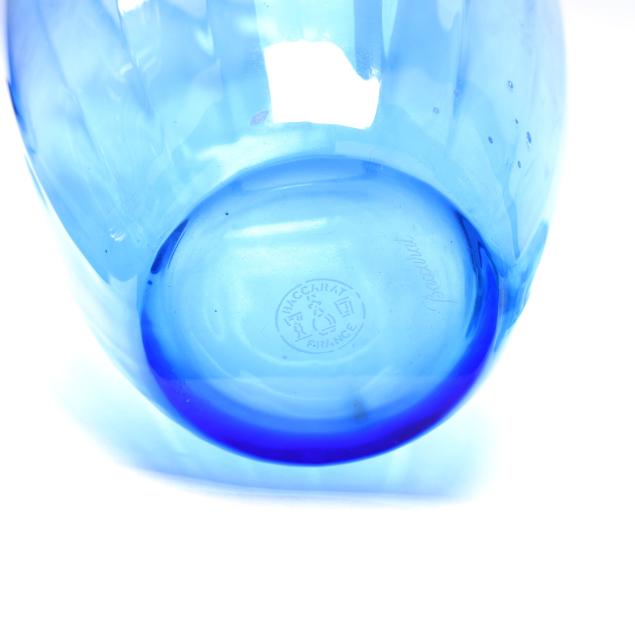 Stopper with chip to base; blue vase with small flea bite rim chip; otherwise good condition. See Terms and Conditions of Sale: Clocks and Watches.