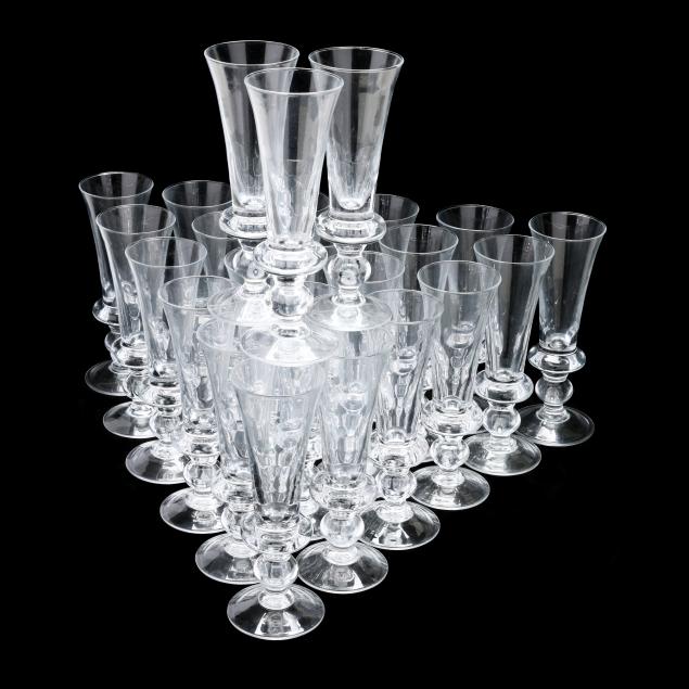 Second half 20th century, molded clear glass with thick ball and knop stems, unmarked.