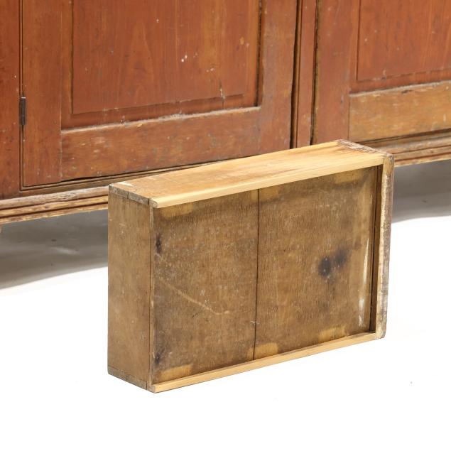 Enhanced paint; cornice with small chip to the front left side; both sides of cornice are later; age appropriate wear throughout; later (but appropriate) pulls; later feet.