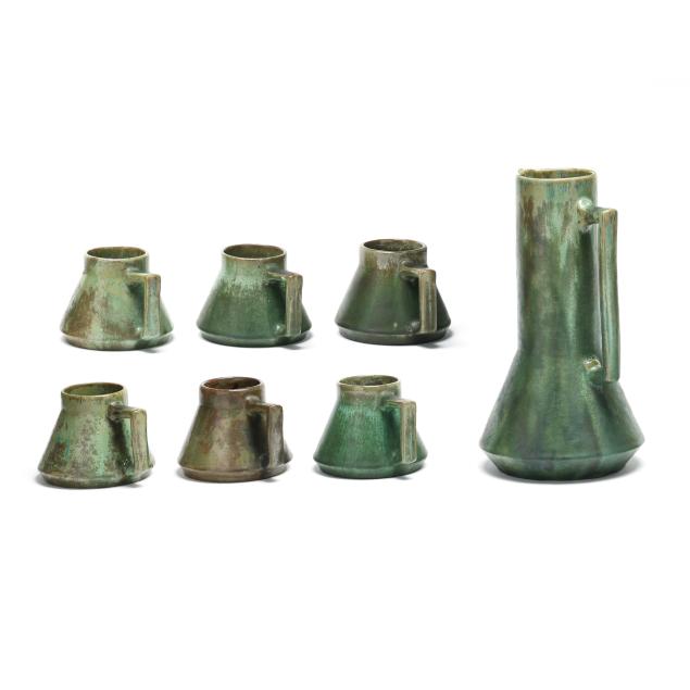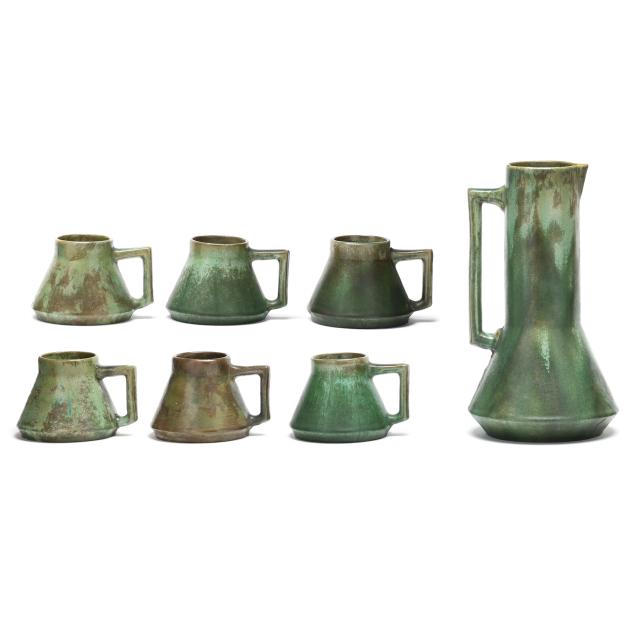 a-fulper-art-pottery-pitcher-and-six-mugs