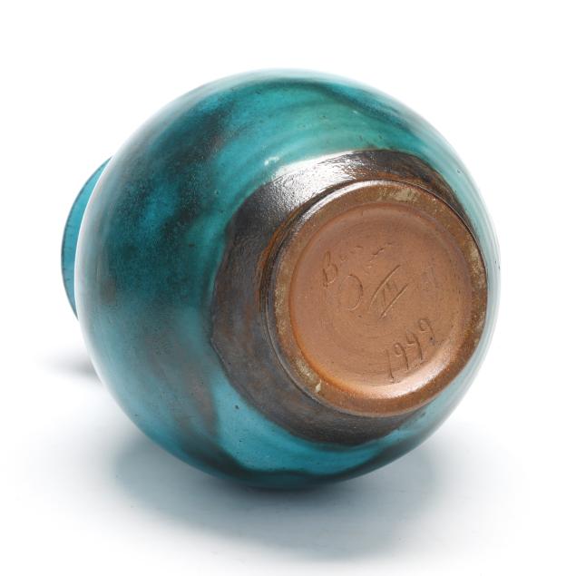 1999, Han style vase with Chinese Blue glaze, inscribed with date and signature to underside.
