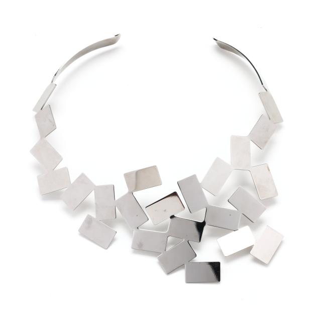 The collar necklace with rectangular motif, signed Alessi / Italy / Inox / Mario Trimarchi 2011.