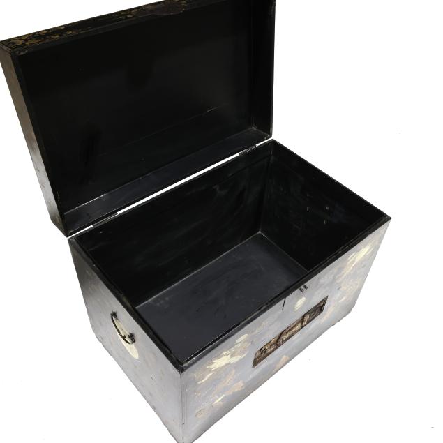 Crack to the lid; some lacquer wear to the edges; interior with odor (possibly from manufacture).