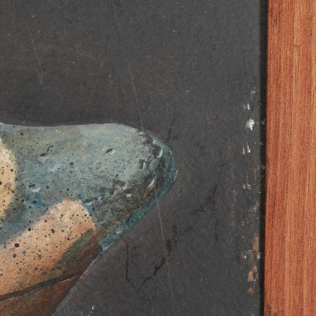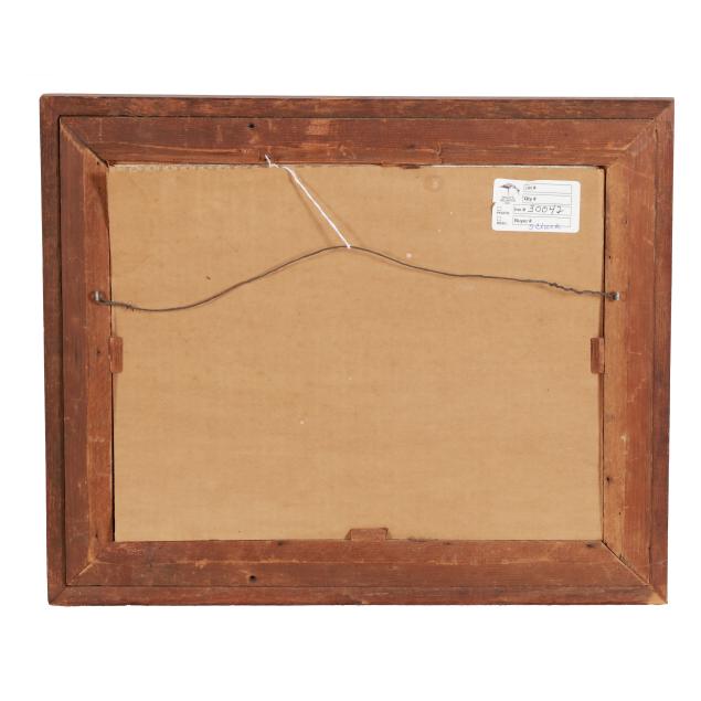 Oil on board, signed at lower left, labeled to the verso, framed.