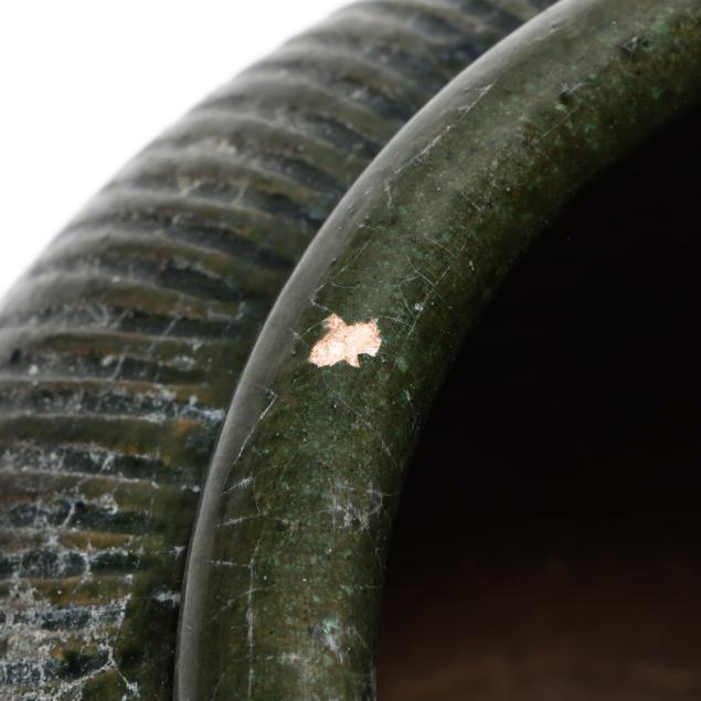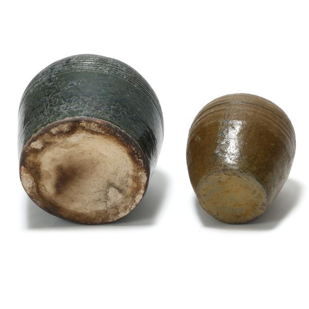 From the Estate of the late Susan C. Frankenberg, Hillsborough, North Carolina Both with firing anomalies and surface abrasions; the smaller with chip to rim; the larger with glaze flake at rim and overall glaze crazing.