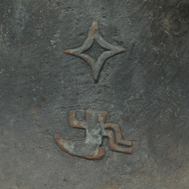 taotie mask faces, the decoration is continued on lower two relief cast sections together with slightly raised flanges, the high foot is cast to the interior with a clan sign made up of two graph symbols, presented together with later storage box.