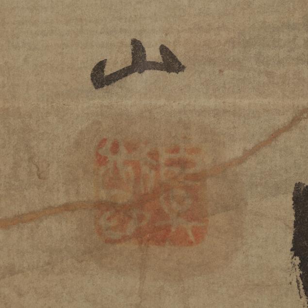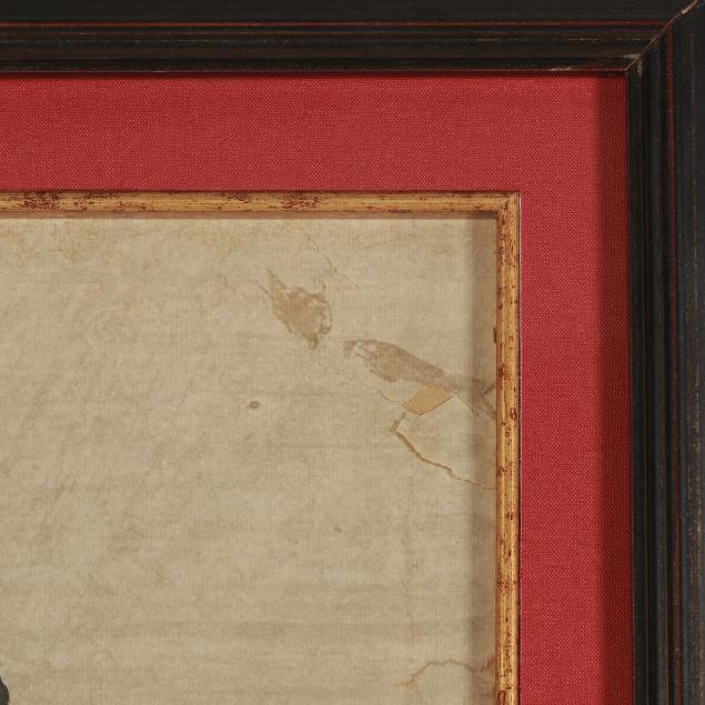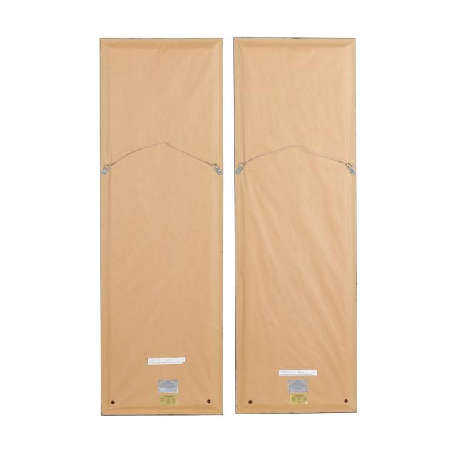 Toning to paper; paper appears to have a wash over it; left painting with some tears to upper right corner with lifting and some loss; more repaired and stable tears to left hand side of painting; repairs to right painting; a few areas with stains; not examined outside of the frames.