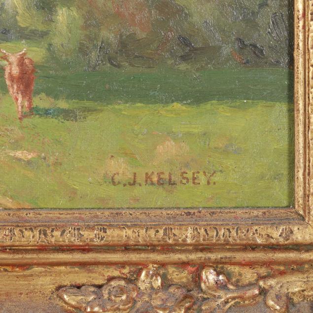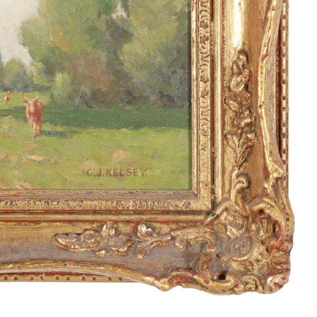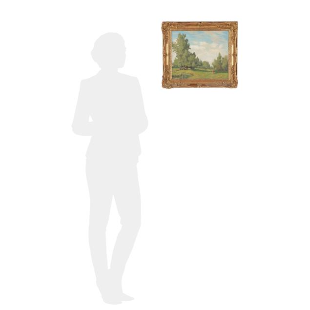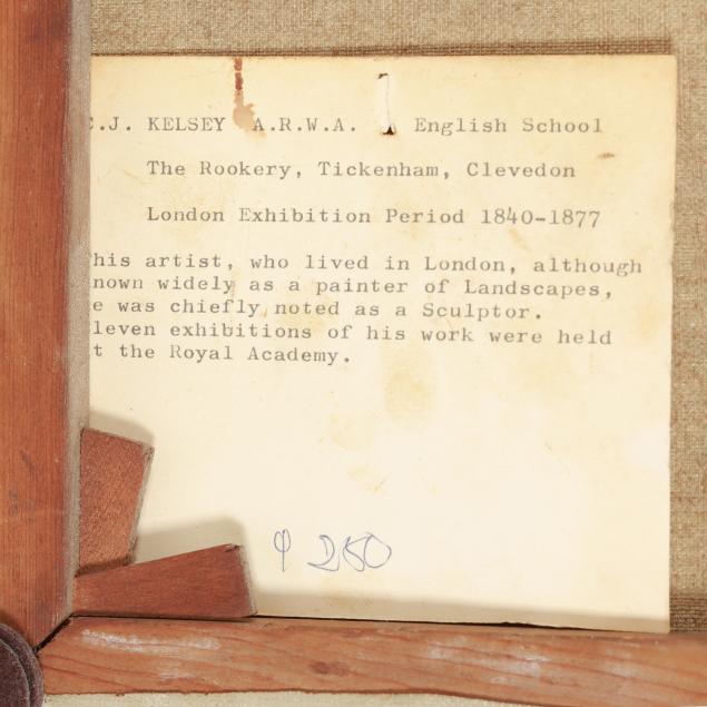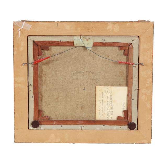 Oil on canvas, signed at lower right, art suppliers stamp of Reeves & Sons, London to verso, presented in a giltwood frame.