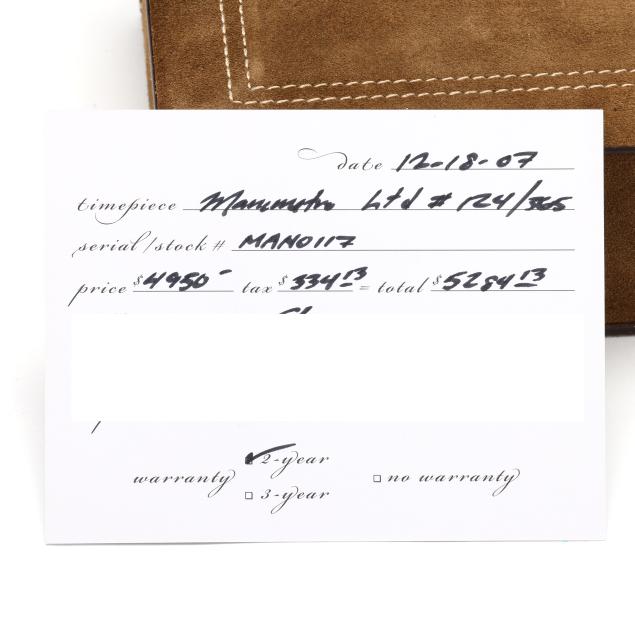 Accompanied by inner and outer presentation boxes, papers, warranty card, catalogues, and receipt dated 12-18-07.