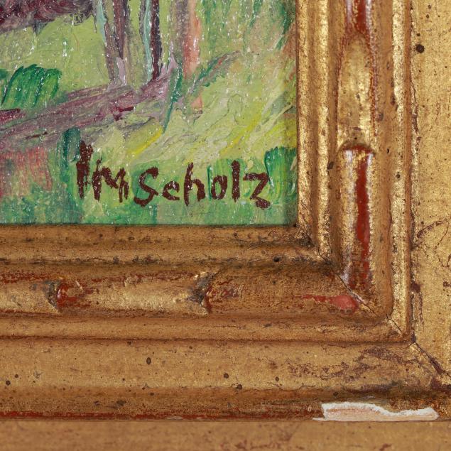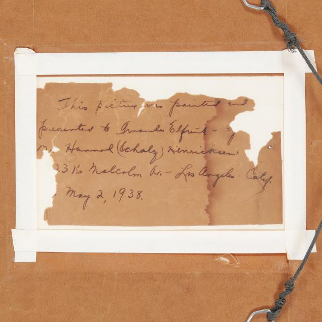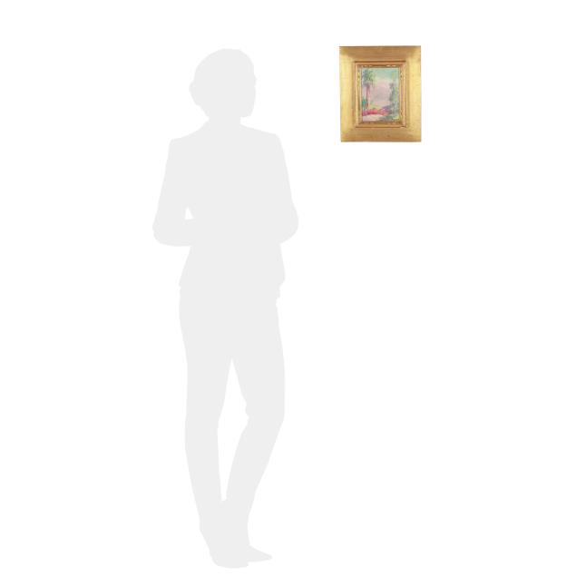Oil on canvas (laid on board), 1938, signed at lower right, inscribed to the verso, presented in a gilt frame.