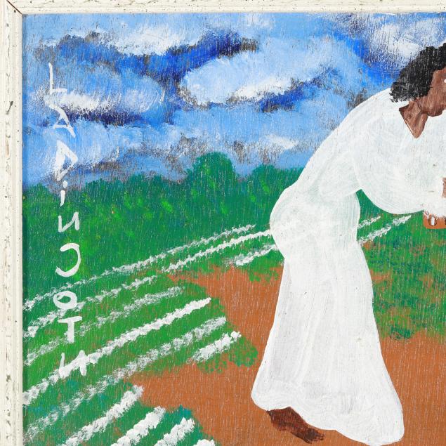 Black Joe Jackson was a self-taught African American folk artist from Georgia, celebrated for his vibrant and expressive depictions of rural Southern life. Born into a sharecropping family near Atlanta, Jackson began painting later in life, often using house paint on salvaged wood or plywood. His works frequently feature phonetic spellings and portray scenes from his childhood memories, including cotton picking, family gatherings, and community events. His paintings have been showcased in various galleries, contributing to the African American folk art traditions.