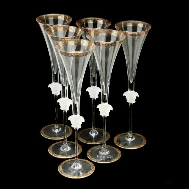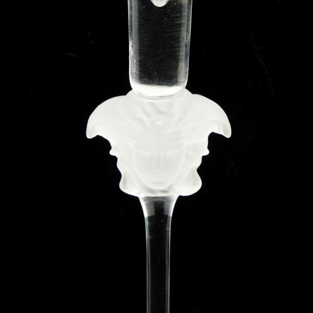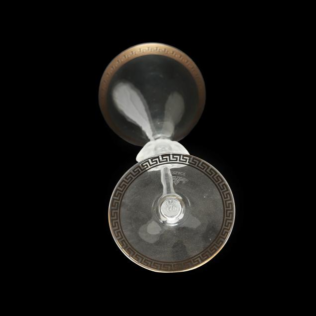 Made in Germany, designed by Versace, all signed to the underside, featuring a gilt greek key band to upper rim and foot, frosted Medusa head stem; together with the original fitted packaging.