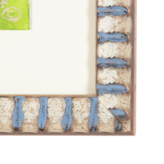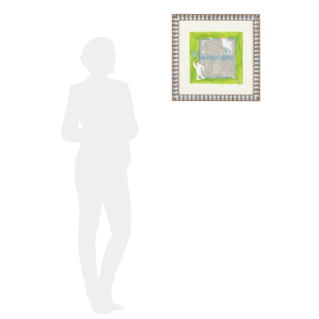 Acrylic on paper, signed at lower right, mounted and framed below glass.