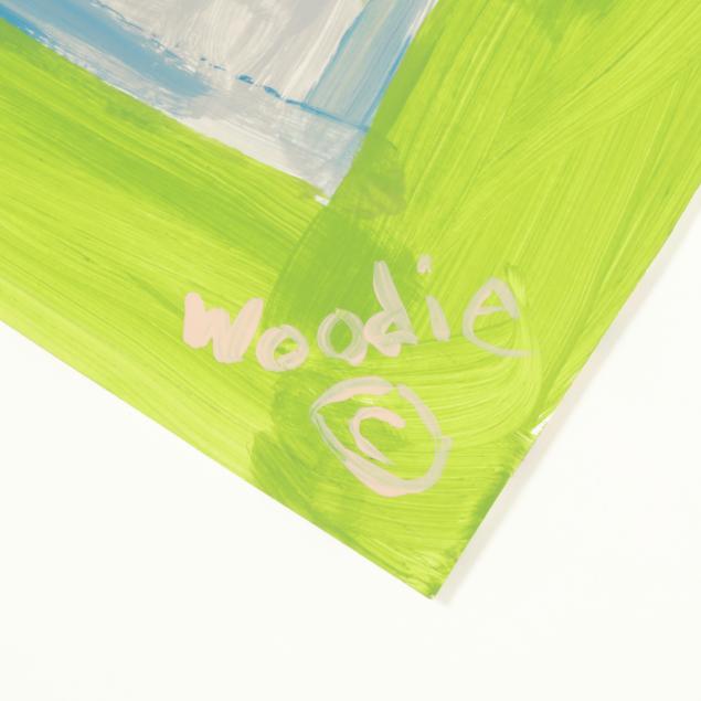 Private Collection of a Lady, Asheville, North Carolina A former house painter, Woodie discontinued his occupation for health reasons. He then began a new career of 'memory paintings'. A self taught artist, his works show pattern, color, and balance as well as depiction of figures in movement.