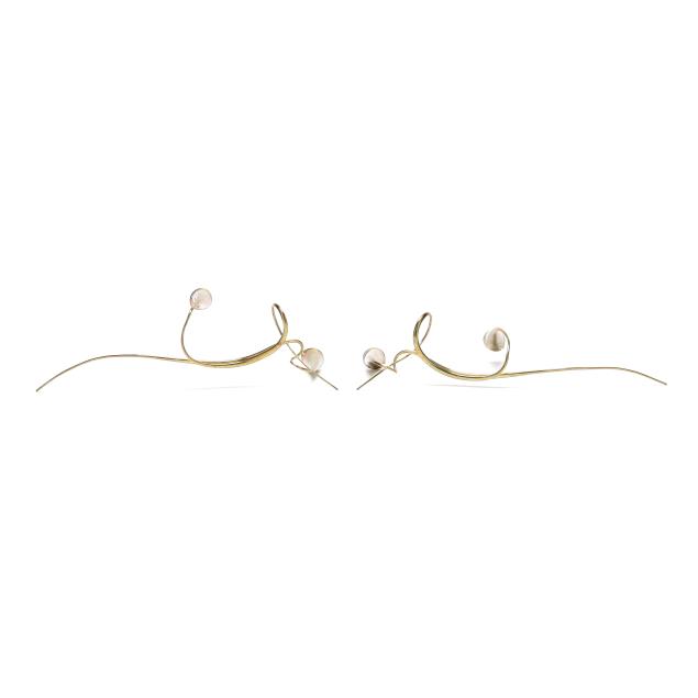 1986, each with two cala lily form capitals above swirling stems, both inscribed "Daniel Miller '86" to stem.