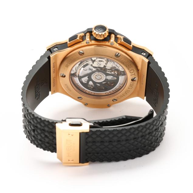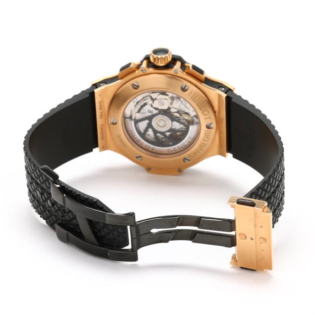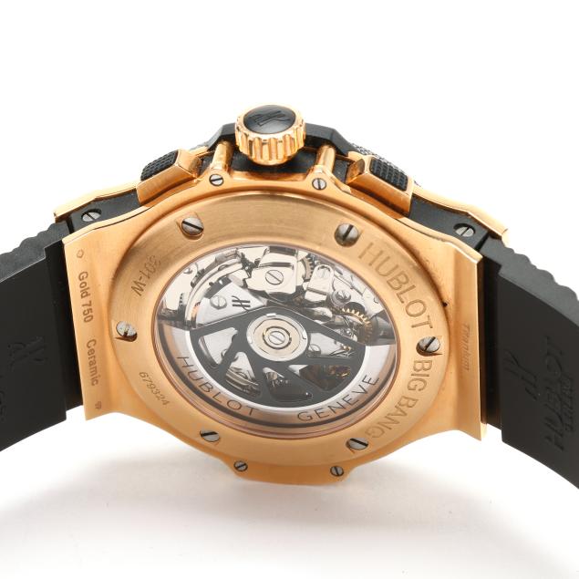 Circa 2007, automatic, reference number 301.PB.131.RX, serial number 679324, the black titanium case with red gold accents and black polished ceramic bezel, the signed carbon stamped dial with rose-tone baton and Arabic numeral hour markers, rose-tone luminescent sword hands, subsidiary second dial at 9:00 hour, subsidiary chronograph dials at 3:00 and 6:00 hours, and date window at 4:30 hour, the signed black textured rubber strap numbered 12-25-80 / 6-25-100 completed with a black PVD stainless steel and rose gold signed deployant clasp stamped 750, the signed caseback stamped Gold 750 / Ceramic / Titanium, with a Swiss hallmark for 18KT, and numbered 301-W / 679324.
