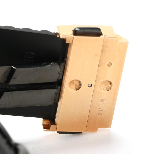 Scratches to case and buckle; good estate condition; running at time of examination. Please see Terms and Conditions of Sale: Clocks and Watches.