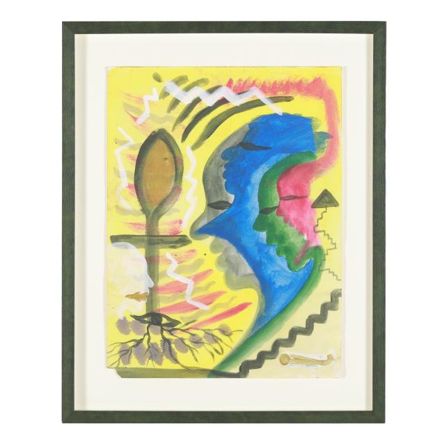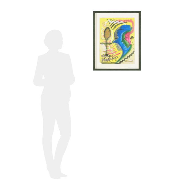 Watercolor on paper, 1991, signed and dated to lower right, mounted and framed below glass.