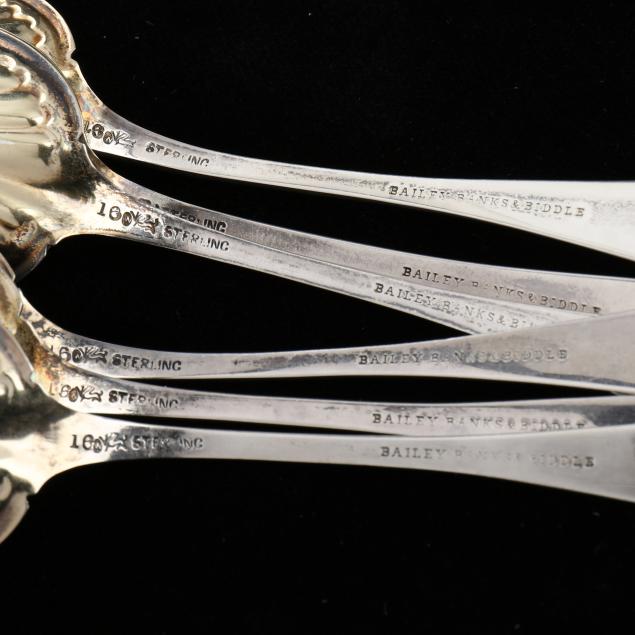 Retail mark of Bailey, Banks, & Biddle, featuring gold wash bowls and engraved handles, not monogrammed.