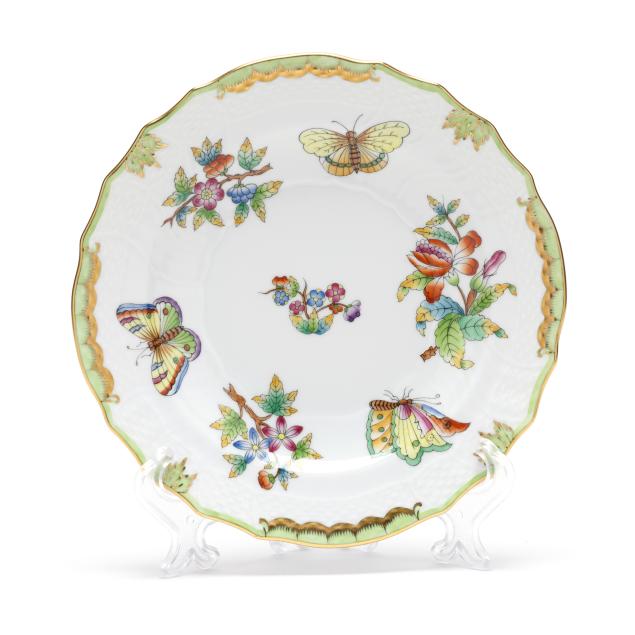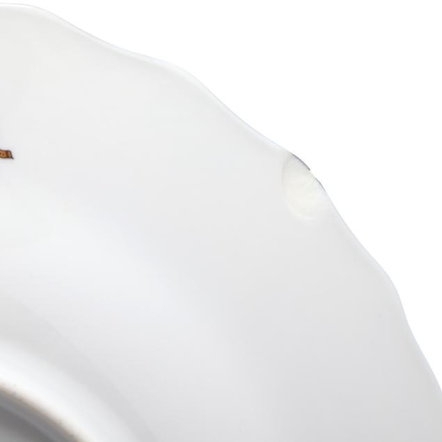 Hungary, hand-painted and gilt porcelain, (8) salad plates #1518 (7 1/2 in.), all marked with company backstamp to underside.