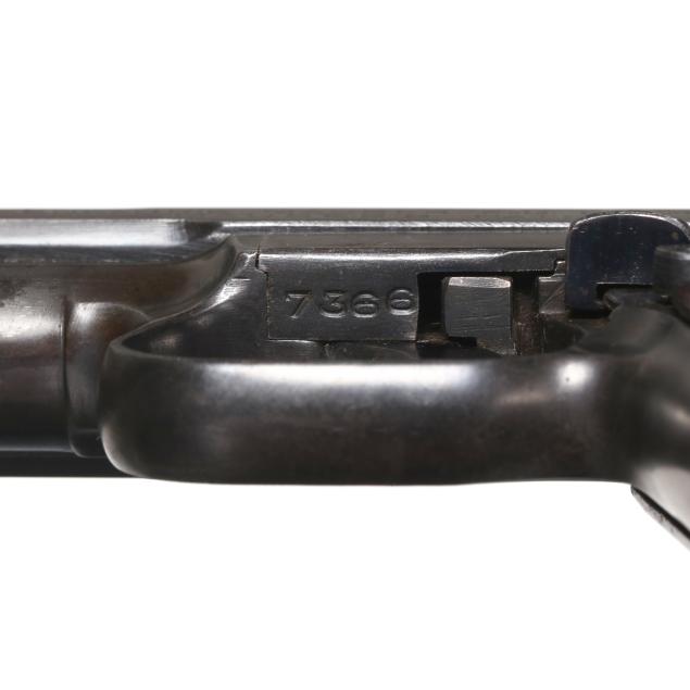 Overall fair estate condition, bright and shiny bore with clean rifling, blued finish overall is turning an old gun brown patina, light to moderate finish wear scattered throughout, grip finish in good condition with a clearly defined flat-top checkering pattern.