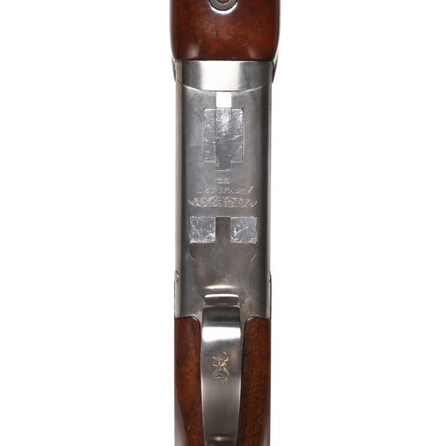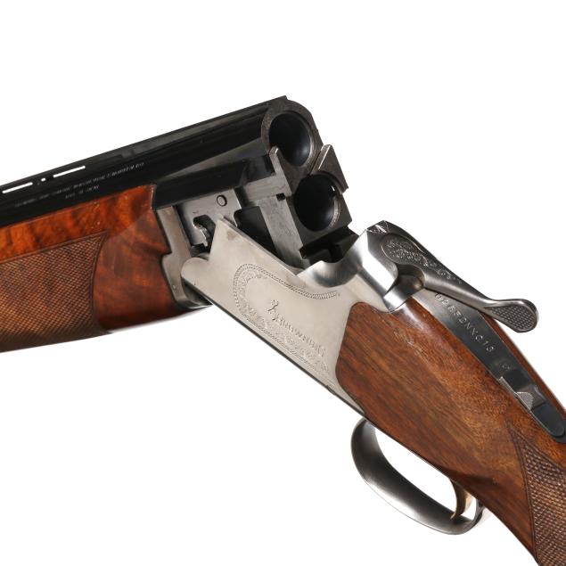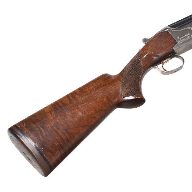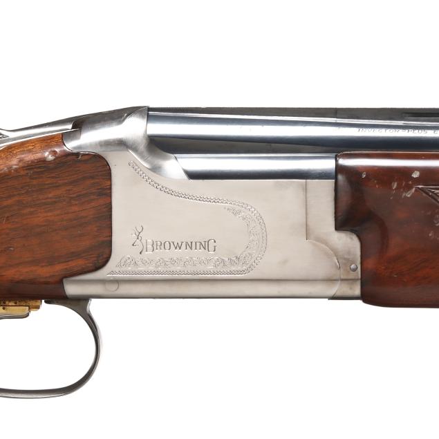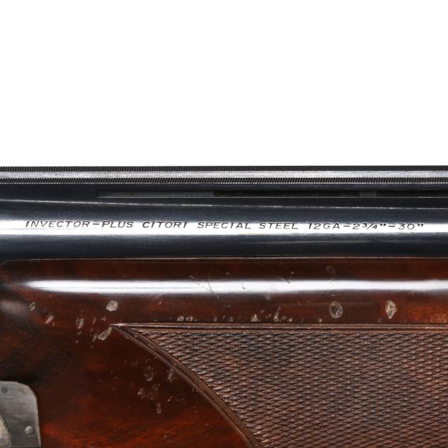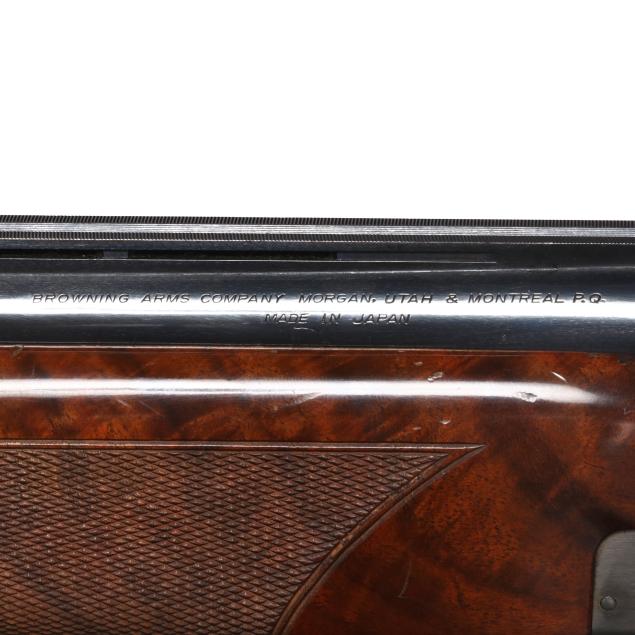 Serial number 02652NXC13 present on top tang of coined O/U receiver, text of BROWNING ARMS COMPANY MORGAN, UTAH & MONTREAL P.Q. MADE IN JAPAN and INVECTOR PLUS CITORI SPECIAL STEEL 12GA - 2 3/4" - 30" present on 30 in. ported vent rib blued steel barrel, screw-in chokes, single white bead, ejectors, single selective triggers, manual safety, high gloss checkered walnut stock and forend, PACHMAYR sporting clays recoil pad.