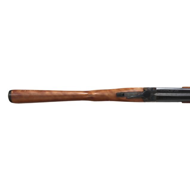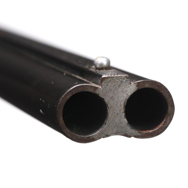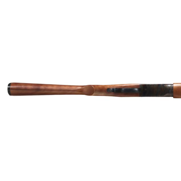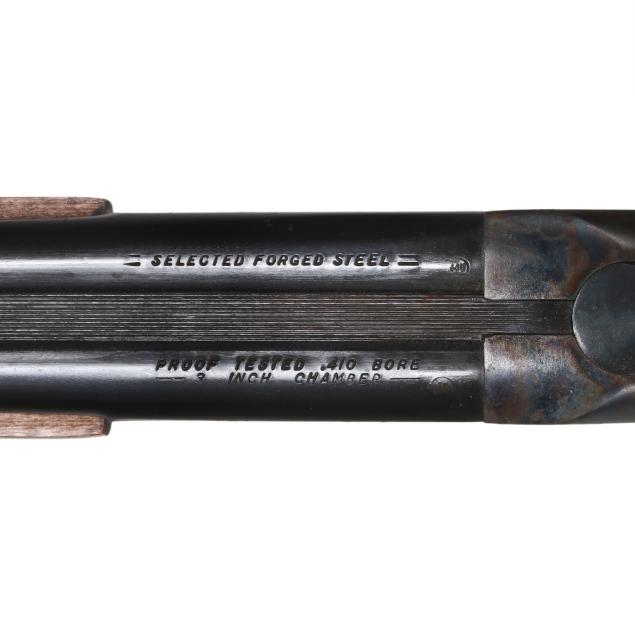 Overall fair estate condition, bores are shiny and showing moderate wad fouling, barrel finish show speckles of light surface rust, color casing colors remain vibrant with some slight surface rust along belly, top lever does not lock to the right when breeching, stock and forend wood is stained and scattered incidents of flaking and scraping of finish present which show true color of wood beneath.