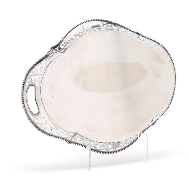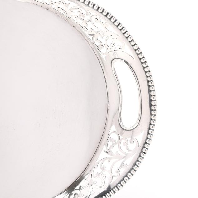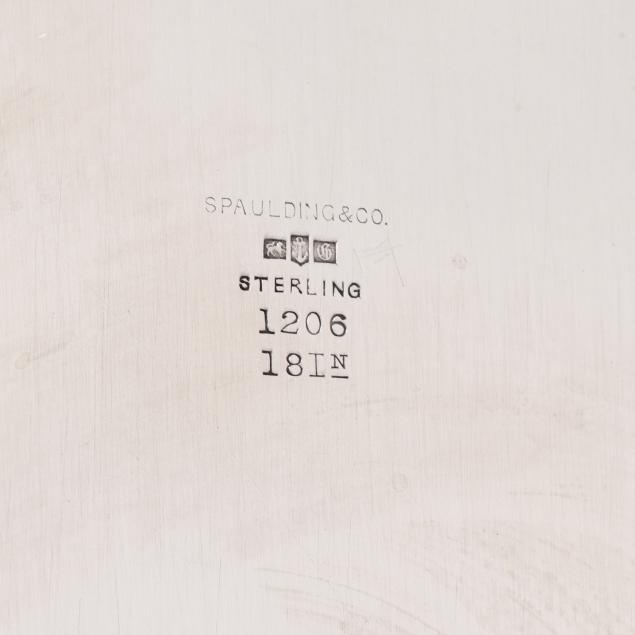 Pattern number 1206, retail mark of Spaulding & Co., featuring a reticulated gallery with scalloped bead course rim and double handles, monogrammed to the center.
