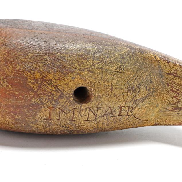Exmore, Virginia, circa 2020, carved and painted wood, tack eyes, incised I McNair.