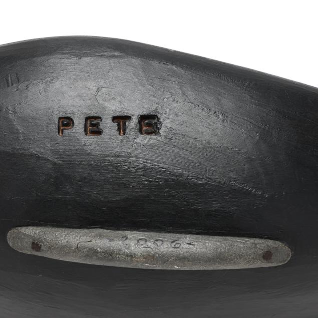 Cape Charles, Virginia, circa 2006, carved and painted wood, glass eyes, branded PETE, dated 2006 on the ballast.
