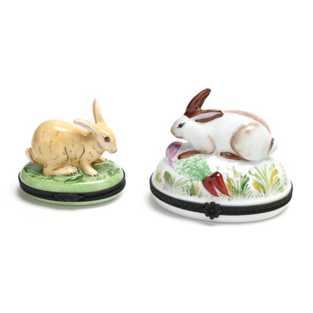 Looseness to smaller rabbit box and tortoise box; several with gilt loss to metal trim.