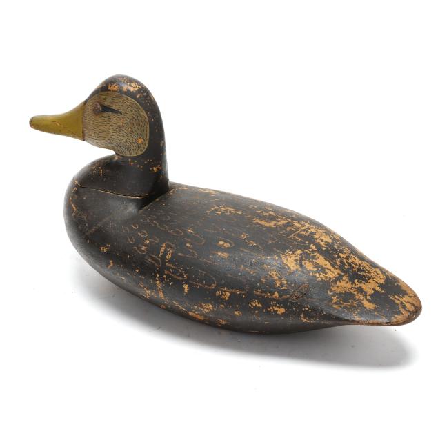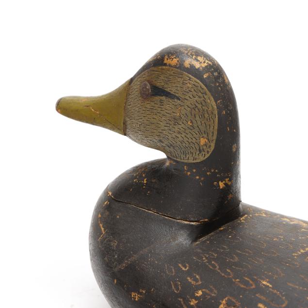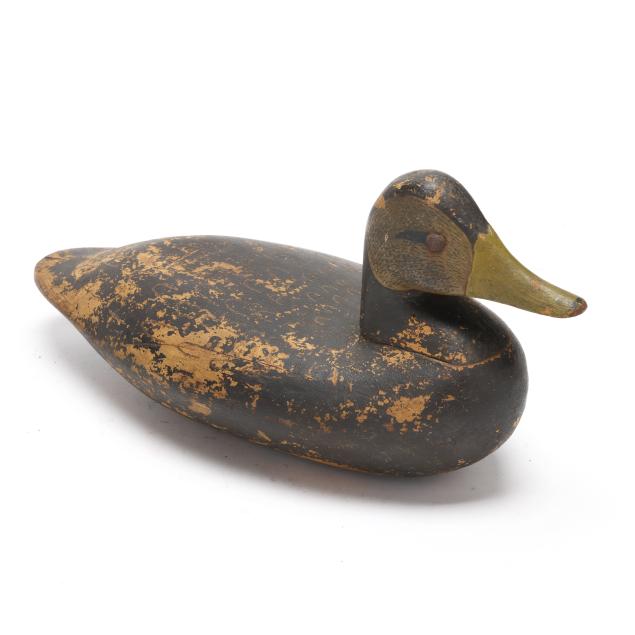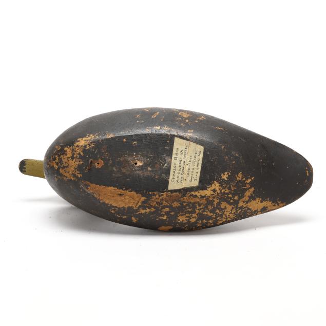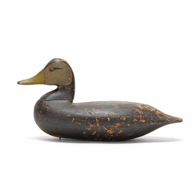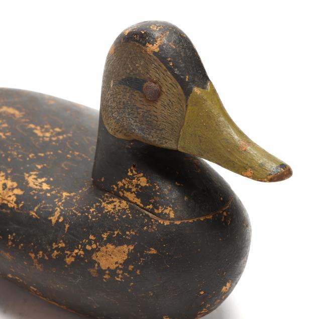 Original paint worn to bare wood in places, tight and stable hairline on left side of the bill.