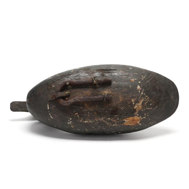 Back Bay, Virginia, circa 1900, carved and painted wood, unique iron U-bolt ballast.