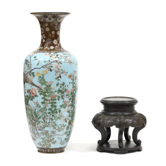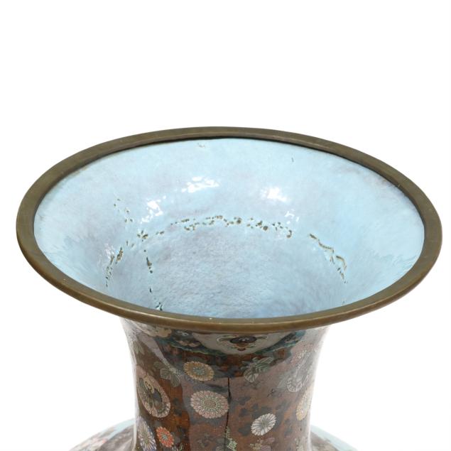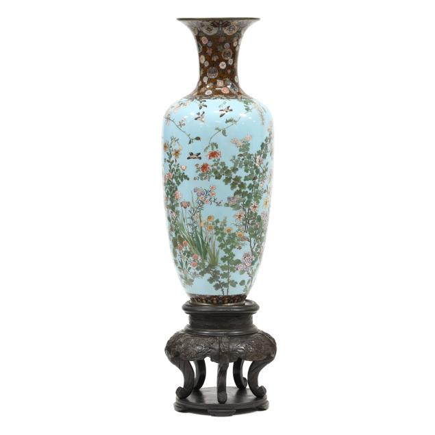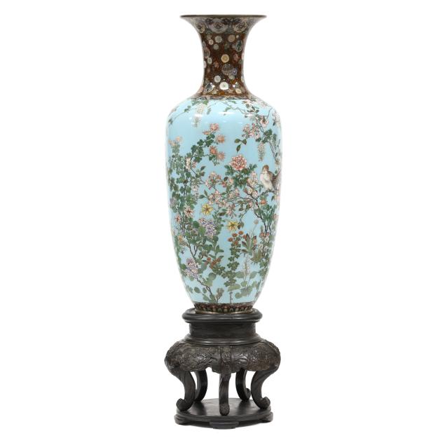 Meiji period (1868-1912), late 19th century, an impressive vase with wide flaring mouth finely rendered in gold, silver, and copper wire of varying gauges and some areas with