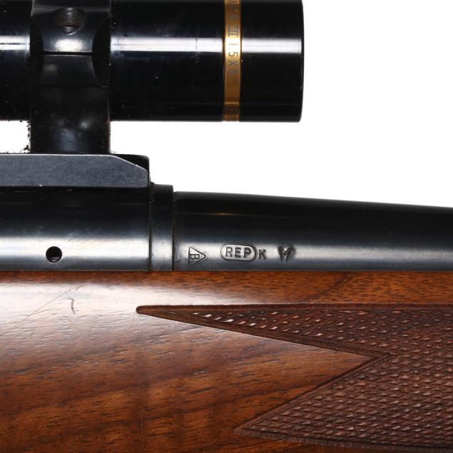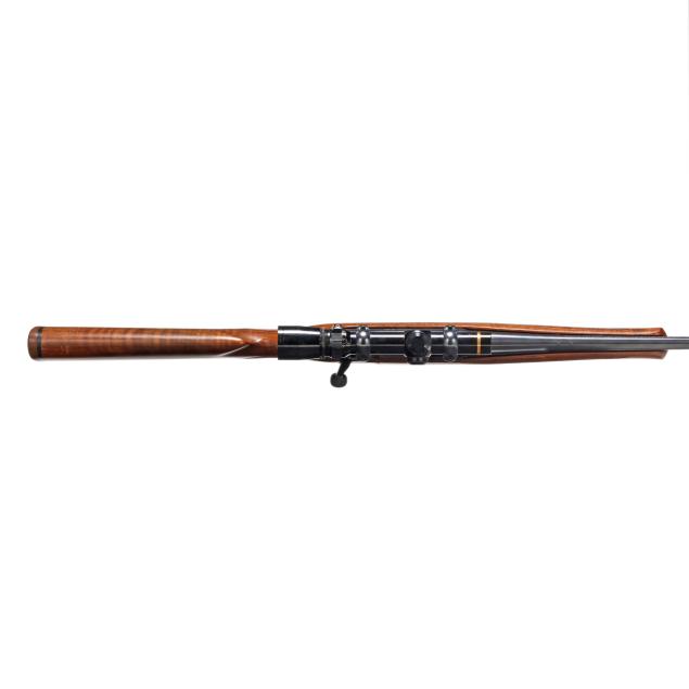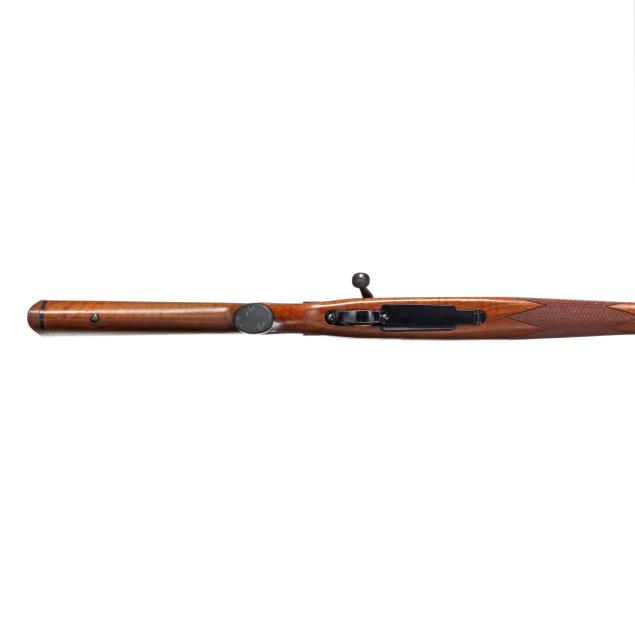 Overall good estate condition, blued surfaces are healthy and dark, bore is bright with strong rifling but also dusty and in need of cleaning, attracting walnut stock with dry and sharp checkering, moderate amount of fields marks scattered over most of the stock.