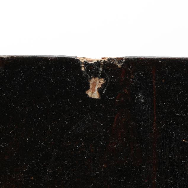 Several paint flakes; evidence of scattered retouch visible under UV light.