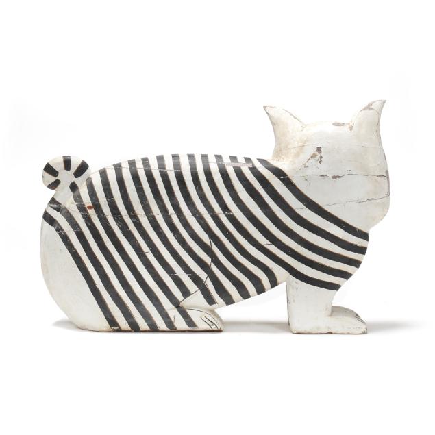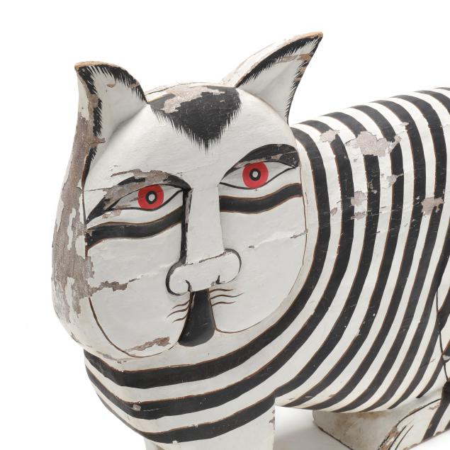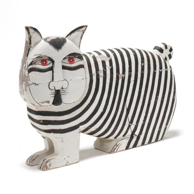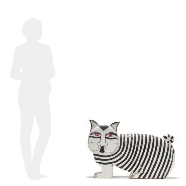 Large Carved and Painted Folk Art Cat Sculpture