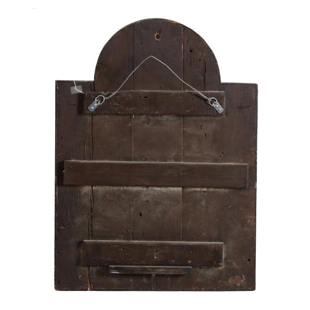 Some insect damage to wood; a few scattered areas of paint flecks; crack to wood down the right side; a few small nicks to wood overall.