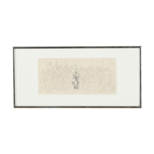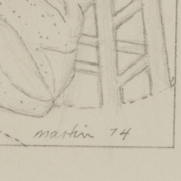 Graphite and gouache on paper, 1974, signed and dated at lower right, inscribed to the verso, matted and framed below glass.