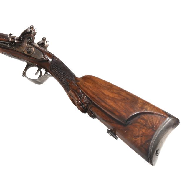 Overall excellent estate condition, engraving, checkering and stock sculpting is clear and articulate, lock mechanism is exquisitely made, lock work functions as designed.