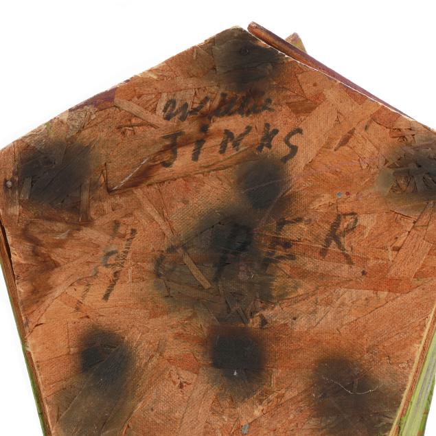 Willie Jinks (1921-2012), was a self-taught artist born into a sharecropper family as one of thirteen children in Locust Grove, Georgia. He eventually moved to Atlanta as a young man, where he began working for the Department of Sanitation. Later in life, Jinks began salvaging and collecting junk found on the job to incorporate into his art.