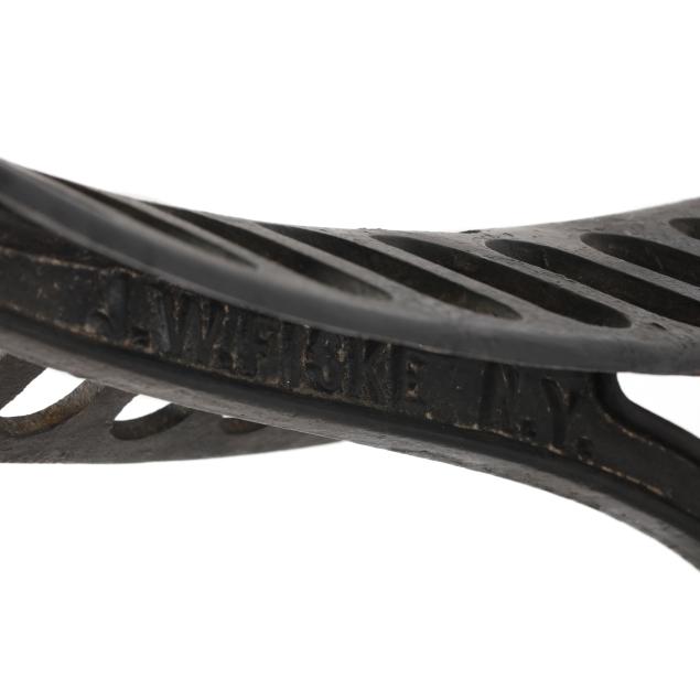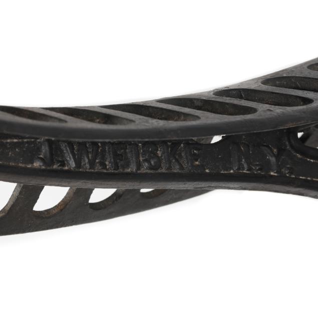 New York, mid- to late 19th century, cast iron saddle rack, marked "J.W.FISKE N.Y." to side.